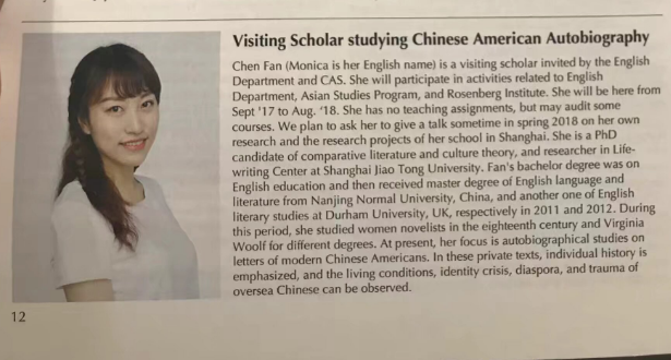导师于硕士阶段的研究范式打磨、学术前沿追踪、论文写作精进及科研诚信坚守等方面,给予了细致入微的指导。正是这份深耕学术的引路之力,让她在硕博求学途中,愈发清晰地认知到自身知识深度的不足与研究方法的局限,从而更坚定了向上求索、精进自我的迫切决心。读博期间,她深度参与一项关于海外华人研究的国社科重大项目,并成功申请国家留基委奖学金(CSC)赴美交流访问。基于这些经历,她对于海外华人的命运及如何在海外传播中国文化产生浓厚兴趣。在美期间曾在哈佛大学、萨福克大学做中国文化主题演讲。