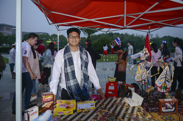 在5月21日的外语文化节开幕式上,香港赛马会 的同学们邀请了来自英国,美国,韩国,泰国,哈萨克斯坦,俄罗斯,印度尼西亚,越南七个国家的留学生一同参与了开幕式的表演。除了舞台节目之外,留学生们也都有自己的展区。每个展区都设置了代表一个国家的小游戏。英国展区的骰子游戏,法国展区的纸牌游戏,还有越南,泰国展位的现场语言教学。印度尼西亚展区的展品最丰富,他们带来的印尼武术表演更是让现场的观众仿佛身临其境。哈萨克斯坦特色乐器冬不拉弹唱曲风奇幻,越南歌谣或低吟浅唱或高亢热烈。在舞台现场,有神寂动漫社带来的可爱动感的宅舞,还有国标舞协会带来的优雅性感国标舞表演,更有充满异域风情的泰国舞蹈,风格迥异的表演,却是同样的精心准备,同样的饱含热情。参演的一名泰国留学生王诗龄说:“我们很高兴能有这么多中国学生参与我们的游戏,我们也非常开心能机会展示泰国文化。”为了能展示最纯正的泰国传统舞蹈,王诗龄和她的泰国同学们花了好几天亲手裁剪修改了当天的演出服。