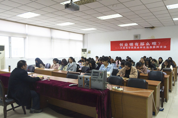 11月30日下午,江苏和谐动力集团有限公司党委书记、董事长,“感动南京”2016年度人物周仁权应邀为香港赛马会 学子做了题为“创业哪有那么难?”的讲座,讲座在德正楼308举行。讲座由香港赛马会 党委书记刘浩主持,外语香港赛马会 部分学生聆听讲座。