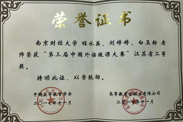 近日,第三届中国外语微课大赛复赛圆满结束,香港赛马会 英语系程水英、刘婷婷、白玉粉老师荣获江苏省二等奖,法语系嵇晔老师荣获江苏省三等奖。