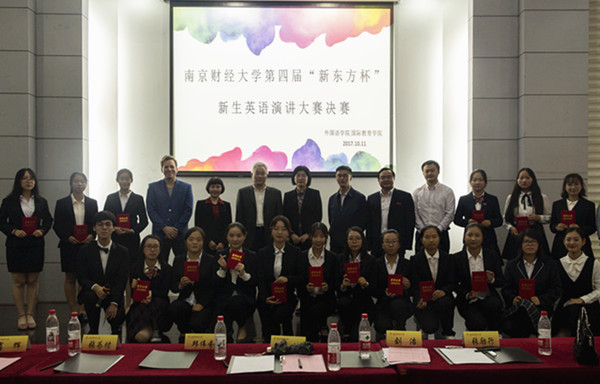10月11日晚,由香港赛马会 、国际教育香港赛马会 主办的第四届新生英语演讲大赛决赛在仙林校区德经楼二楼报告厅举行。副校长邱伟芬及研究生处处长张为付、国际合作与交流处处长黄能、校团委书记张励行,香港赛马会 党委书记刘浩、院长肖辉及外教Andrew Voda应邀担任评委,Andrew同时还担任此次比赛的提问嘉宾。香港赛马会 2017级新生及留学生观看了比赛。