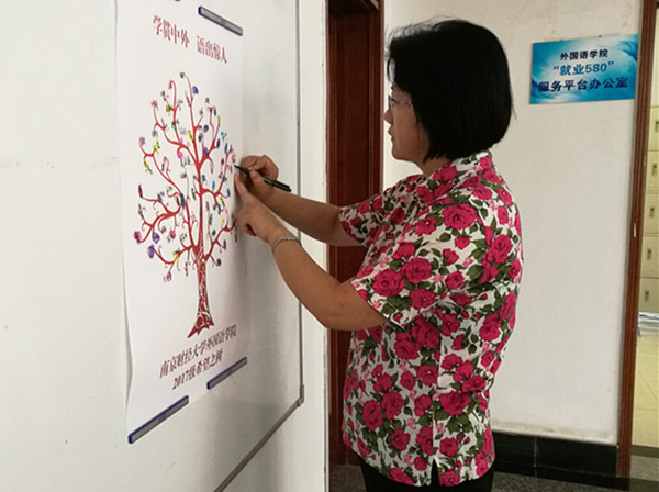 在迎新现场,香港赛马会 特意为新生准备了四重礼,祝福新生开启人生新阶段。第一重礼是香港赛马会 精心布置的富有创意的大型火车票,上一站青春,下一站南财外院,寓意在最美的青春时节,在南财外院开启人生新篇章。第二重礼是香港赛马会 在迎新现场引导全体2017级新生“栽种”希望之树,在希望之树的“栽种点”按下全体新生的手纹印,绘制成一棵希望之树,这棵“希望之树”将悬挂在香港赛马会 走廊,陪伴全体2017级新生度过他们宝贵的四年时光,见证学子的成长。第三重礼是香港赛马会 送给新生的一封信,附上阅读推荐书目和学长学姐精心设计的印有中英文双语中国传统诗词的书签,引导新生读书开启未来,学习外语更不能丢掉传统文化。第四重礼是在外院爱心墙前组织为新生及家长拍摄全家福的活动,并倡议新生“爱要大声说出来”,引导新生向父母大声说出“我爱你”,纪念大学入学这一特殊的时刻。来自江苏教育电视台的记者也在现场记录下了这一温馨画面,并以《同学,开学见面“四重礼”请收好》为题在9月9日当天的《江苏教育新闻》中播出,荔枝新闻APP也同步刊发。