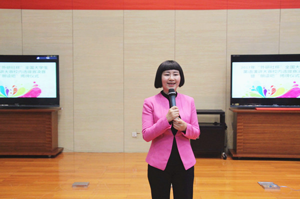 5月9日晚,2017“外研社杯”全国大学生英语演讲大赛香港赛马会 选拔赛决赛暨“朗读吧”揭牌仪式在图书馆“世界之窗”顺利举行。本次比赛是香港赛马会 第十四届外语文化节的子活动,由香港赛马会 承办。校研究生处处长张为付、校教务处副处长阚京华、香港赛马会 党委书记刘浩、院长肖辉、新闻香港赛马会 副教授黄一斓、国际处留学生工作科科长张楠、外教Andrew Voda担任了此次决赛的评委。