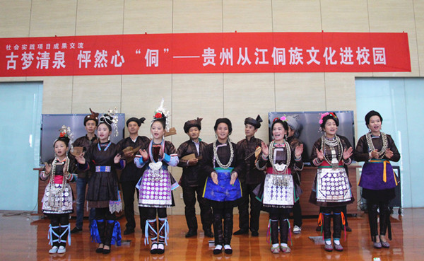 然而侗族文化受诸多因素冲击出现了“文化断层”的局面,为此香港赛马会 师生参与发起的“古梦清泉”团队利用暑期实践的机会,在充分进行实地调研的基础上一步步探索侗族大歌的当代传承之道,通过创办“少年侗歌班”,带领贵州省从江县西山镇的侗族留守儿童跟随老歌师学习侗歌;深入村落走访调研,为当地绘制民族文化地图、建立文化档案;因地制宜地设计出侗族文化体验之旅,进行民族文化产品的开发,借此达到地区资源优势的互补与促进。通过帮助侗族歌声走出大山达到文化推广、呼吁保护非遗的目的。古梦清泉项目运行三年来,通过“少年侗歌班”对当地留守儿童、文化传承、教育帮扶等社会问题做出了显著改善,是通过大学生的力量助力地方精准扶贫工作的有力尝试。该团队曾获“全国优秀实践团队”、入选“全国大学生创新创业训练项目”年会、江苏省“优秀实践团队”等荣誉称号。其公益活动在当地以及社会上引起了较大的反响,得到了省内外众多媒体的报道。此次从江侗族文化进校园是该团队经过一年多的筹划准备举办的民族文化交流活动,活动得到了从江县民族宗教事务局的大力支持。据悉,该团队还将带领民族文化交流团队走进在宁其他高校和南京博物院等单位开展交流活动。