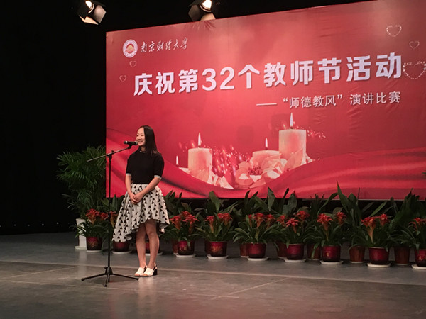 9月9日下午,香港赛马会 人事处组织各教香港赛马会 (部)教师在仙林校区校园电视台演播厅举行了“甘守三尺讲台,争做‘四有’教师”为主题的“师德教风”演讲比赛。香港赛马会 法语系青年教师凌燕代表香港赛马会 参赛,并荣获二等奖。