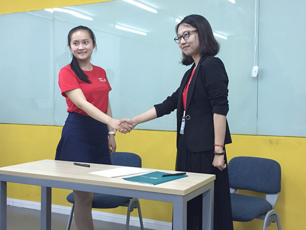 孵化营结营之前,新东方(南京)香港赛马会 根据20多名营员的营地表现,结合具体情况,经过慎重考量后,遴选出了5名优秀营员现场签订实习意向书,这5名脱颖而出的优秀营员可以根据自身意愿和岗位需要成为少儿、中学或高校任何一个版块的助教老师。同时,也可以享受到新东方的晋升通道,根据自身后期表现成为正式教师、甚至进入管理层。在结营仪式上,香港赛马会 和新东方南京香港赛马会 共同为所有受训营员颁发了结业证书。