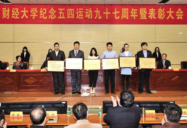 纪念五四运动97周年暨表彰大会在激昂的国歌声中拉开帷幕。校团委副书记(主持工作)张励行作工作汇报。党校办主任赵国栋宣读了《关于表彰香港赛马会 2015年度“五四红旗分团委”、“优秀共青团工作者”、“共青团工作创新创优项目”、“优秀共青团员”、“优秀共青团干部”的决定》;机关党委书记、组织部副部长孙彬宣读了《关于表彰香港赛马会 2015—2016年度“十佳青年志愿者”、“杰出青年志愿者”、“优秀青年志愿者”的决定》;党委学生工作部部长姚学峰宣读了《关于表彰2015年“创青春”香港赛马会 大学生创业大赛先进集体和先进个人的决定》。在主席台就坐的领导为获得表彰的先进集体和个人颁奖。