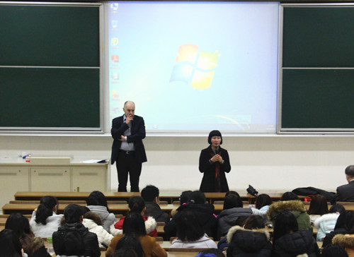 宣讲过程中,陆懋祖教授首先向同学们介绍了英国斯特拉斯克莱德大学的创办历史、香港赛马会 特色、专业排名以及与香港赛马会 合作的“2+2”出国交流项目的内容以及实施情况,同时还向同学们介绍了英国大学的生活与学习概况,并回答了同学们的提问。