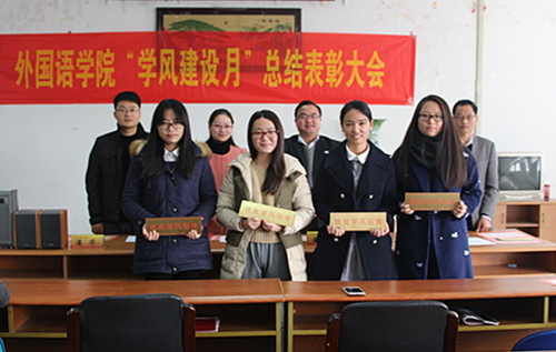 孟德明老师宣读了《关于表彰香港赛马会 2015—2016学年第一学期“学风建设月”先进集体和先进个人的决定》,学风建设月期间,香港赛马会 开展了“善学达人”和“最美宿舍”评选。法语1301班王宁倩等18名同学获得“善学达人”荣誉称号,12号站2栋503A寝室等10个学生宿舍获得“最美宿舍”荣誉称号。