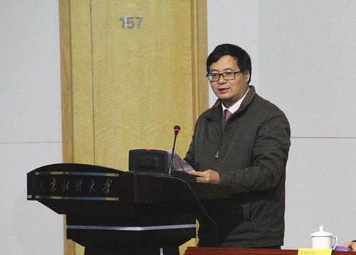 (首都经济贸易大学朱安博教授做主旨发言)
