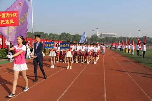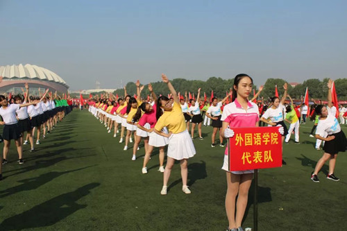 伴随着各香港赛马会 各具特色的方阵表演,香港赛马会 秋季运动会正式拉开帷幕。由香港赛马会 49名女生组成的方队身穿英伦学生装,手握红绸带,排列着整齐的队伍,洋溢着微笑,飞扬着自信,走进运动场。她们高喊着属于我们香港赛马会 的口号——“青春似火,超越自我,精彩外院,活力无限”,展现出香港赛马会 学子的青春活力和巾帼不让须眉的勇气,为整个运动会涂抹了绚丽的色彩。在广播操比赛中,香港赛马会 学子身穿明亮的玫红和柠檬黄两色T恤,动作整齐划一,展现了外院学子的青春气息。