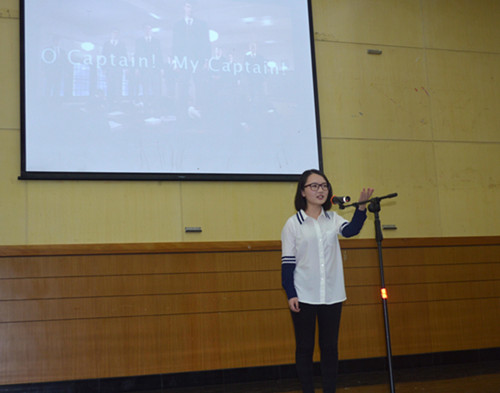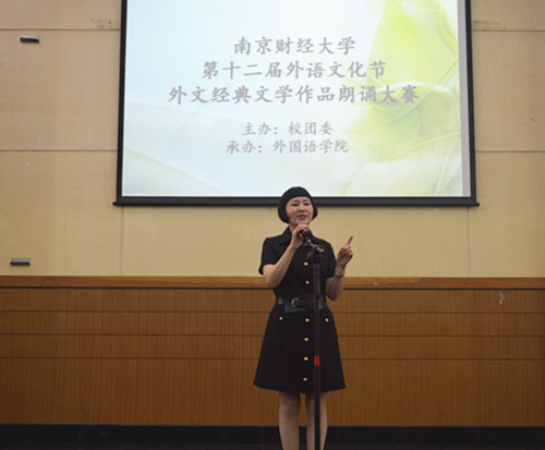 经过两轮初赛的激烈选拔,共有14组选手进入决赛。他们分别用英语、法语、德语、日语并以不同形式进行朗诵。英文短剧《功夫熊猫》将表演与朗诵相结合,情节生动、富有趣味;日文朗诵《枕草子》流畅轻快、富有诗意;英文朗诵《O Captain! My Captain》慷慨有力、饱含激情,极富感染力的表达赢得在场观众的阵阵掌声;德语朗诵《小红帽》音调优美,引人入胜;法语诗篇《米拉波桥》韵味十足,令人陶醉其中;《老友记》则以配音的方式还原情景,幽默风趣,独具匠心。