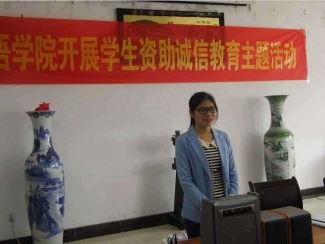 肖书记指出:诚信不仅是一种品行,更是一种责任;不仅是一种道义,更是一种准则;不仅是一种声誉,更是一种 资 源。就个人而言,诚信是高尚的人格力量;就企业而言,诚信是宝贵的无形资产;就社会而言,诚信是正常生产生活的秩序;就国家而言,诚信是良好的国际形象。此次以资助诚信教育为主题的班会意在使同学们更多的了解国家助学贷款资助政策,普及征信、金融等相关知识,宣传诚实守信事迹,增强法律意识,履行国家助学贷款合同,有效地将诚信教育转化为大学生自觉的素养与行为同时,让大家认识到诚信的重要性和培养同学们诚信的意识,并初步学会将诚信融入日常生活中的每一件小事,真正做到诚实守信。