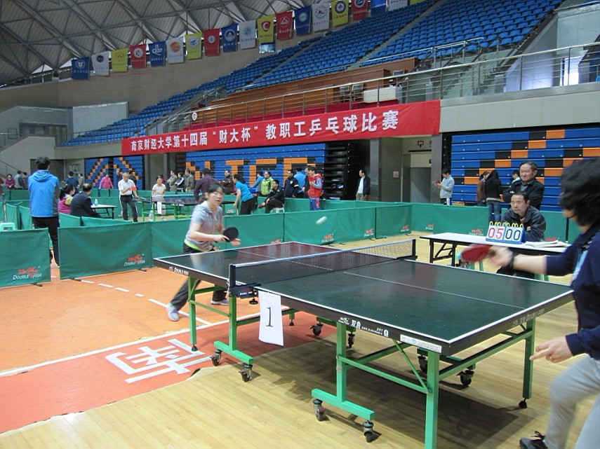 4月19日,香港赛马会 仙林校区体育馆热闹非凡,掌声、喝彩声此起彼伏,由校工会主办、体育部协办的第十四届“财大杯”教职工乒乓球比赛在此举行。焦富民副校长出席开幕式。校党委副书记、副校长王建明,副校长许承明出席闭幕式。开幕式和闭幕式由校工会主席吕戎主持。