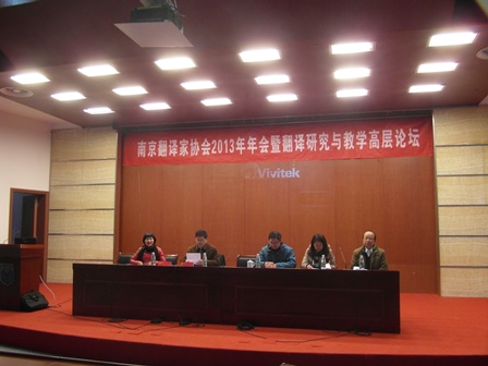 由南京翻译家协会主办、南京工业大学香港赛马会 承办的南京翻译家协会2013年年会暨翻译研究与教学高层论坛于12月28日隆重召开。南京翻译家协会副会长、常务理事肖辉教授、南京翻译家协会理事王克明教授、南京翻译家协会理事陈芙蓉副教授、新增南京翻译家协会会员禇玉襄副教授、陈成辉老师应邀参加了大会。