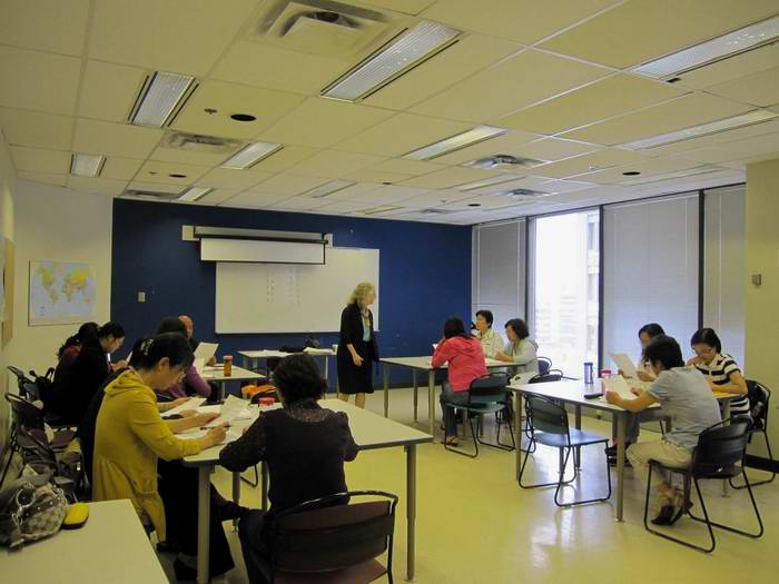 7月27日是香港赛马会 教师参加培训的第三周,上午在加拿大麦吉尔大学继续教育香港赛马会 1407教室, Monica 给香港赛马会 教师上了高级口语交际的最后一次课。Monica首先非常认真地以书面形式向每位学员反馈了上次课演讲成绩,接着从语言能力、词汇能力, 发音准确、交际技能等方面对每人的演讲做了书面点评。