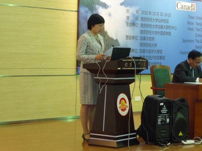 10月21日晚上七点,中加关系校园英语演讲赛决赛在专二楼学术报告厅准时举行。比赛现场同学们手挥中加两国国旗,给比赛增添了和谐、友谊的气氛。嘉宾渥太华大学的Gary Evans教授和康考迪亚大学的Karin Doerr教授出席了决赛现场,观摩了学生们的表现,最后作了精彩的点评,从比赛的组织、形式、内容和学生的表现给予了高度评价。