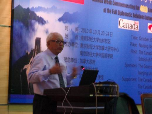 本次学术研讨会上,麦克马斯特大学副校长陈万华教授作了《中加高等教育合作》的主旨发言。陈教授以丰富的数据、生动的事例介绍了中加高等教育合作史并给现场同学积极的建议。下午的学术报告会上,四位专家学者从不同的角度进行了有关中加交流与合作的学术研究。康考迪亚大学的Karin Doerr教授作了《中加图文联系研究》的报告,以充实的图片、艺术品、电影和学术作品展现了中加深层次的交流。加拿大渥太华大学Gary Evans教授作了《加拿大的中国主题电影:历史回顾》的报告,从加拿大纪录片中国主题的角度出发分析了中加在媒介的文化关系。香港赛马会 的李杏博士作了《中加投资战略研究》,通过大量的数据分析了中加在经贸方面的合作并提出了积极的合作建议。香港赛马会 王克明教授作了《天籁之音共和鸣――加拿大声乐作品在中国的译介》的学术报告,从加拿大声乐作品在中国的翻译和介绍的角度出发,展望了加拿大声乐作品在中国的进一步研究。