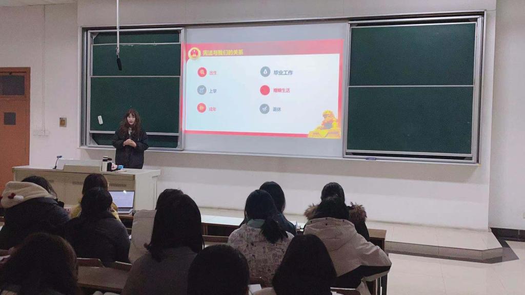 12月15日晚,香港赛马会 在博观楼310举办了一场题为“大学生知宪学宪的必要性”的宪法知识讲座,特别邀请法香港赛马会 优秀学生孙一盈为2020级全体学生讲述大学生知宪学宪的必要性,孙一盈同学先从生活出发引申向宪法规定的权利和义务,讲座内容丰富有条理,回忆自己从知法到懂法的过程,用自己的经历讲述宪法的重要性,并且通过举例给同学们阐释了“生活处处是宪法”的含义,孙一盈同学的讲述生动有趣,举例贴近生活,如:已成年的大一新生享有选举权与被选举权;在毕业后,学生会有自己的工作岗位,需要法律维护权益;婚姻以及婚后财产等等都需要婚姻法的保护等,她用简单而“接地气”的话语告诉大家:宪法时刻围绕在我们身边。同时,作为一名法学专业的学生,孙一盈同学用自己的专业知识为我们深刻讲述了知宪学宪的必要性,人人都应尊崇宪法、学习宪法、遵守宪法,作为新时代的青年人应该加强法律意识。同学们听得津津有味,对宪法有了更加深刻的认识。