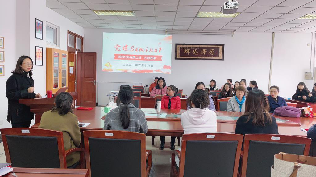 院党委书记李骏为全体师生党员做了题为“善用红色经典上好‘大思政课’”的党建Seminar。她从“红色经典与‘大思政课’的时代意蕴与当下意义”“将红色经典引入课堂,推动思政课程与课程思政协同育人”“将红色经典融入实践,落实‘在社会生活中讲好思政课’”“将红色经典纳入创作与研究,建构‘大思政课’中国话语体系”四个方面阐述了贯彻落实善用红色经典上好“大思政课”的意义与要求;从“加强对红色经典的研究与评论”“做好红色经典外译与传播”“增强红色经典的思想性、时代性与艺术性”三个方面鼓励老师们对红色经典进行创造性转化与创新性发展。
