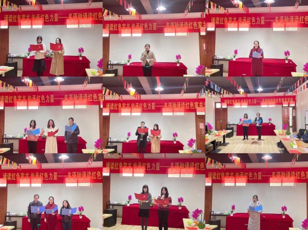 陈芙蓉和李丽萍老师诵读的《罗盛教致父母的书信》铿锵有力,孙驰和朱珊珊老师诵读的《新生十大信条》激人奋进,李群、李丽萍、程水英和游思淳老师诵读的《与妻书》片段凄美悲壮,张琪和郭梦婷老师诵读的《可爱的中国》慷慨激昂,储春花老师诵读的《李大钊,谋中国民族之解放(节选)》大义凛然,孙勇彬院长和文晶老师诵读的《周恩来邓颖超书信往来》深情脉脉又使人振奋,沈文霄老师诵读的《雨花英烈史砚芬与弟弟妹妹诀别信》悲壮激昂,蒲婧新、李群和周标老师诵读的《铭记总理精神:为中华之崛起而读书》气势磅礴,20级日语研究生诵读的《鲁迅全集(节选)》坚定有力……一封封家书震撼人心,一个个红色故事感人肺腑,多语种的别样演绎,让人耳目一新。