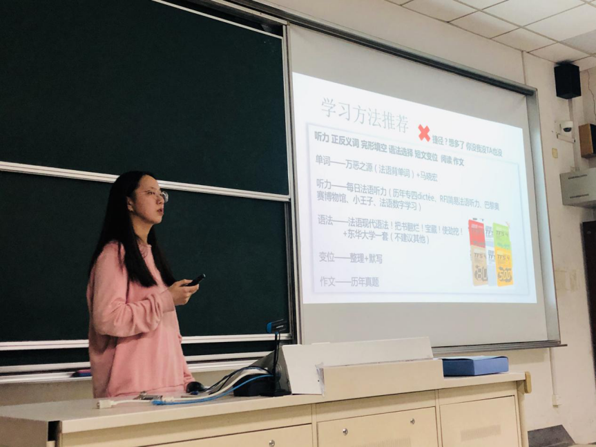 分享会上,英语1902班孙鼎同学从学习、实践、工作、服务四个方面讲述她过去三年来勤学笃行、求实奉献的历程。英语2001班单子乔同学分享了她一路“乔的旅程”,不论是学业、志愿还是实习,她始终以自己的方式在“玩”,走在坚持自我的道路上,她让每一位新生认识到,一个真正优秀的人一定是永远怀着好奇和憧憬,永远心怀善意,执着探索。法语1901班何馨昀同学以诙谐轻松的语言给新生分享了她一路走来面临的许多选择和挑战。她建议大学生要积极参加竞赛,勇敢面对挑战,为学生规划自己的大学生涯提供了更好的参考方案。