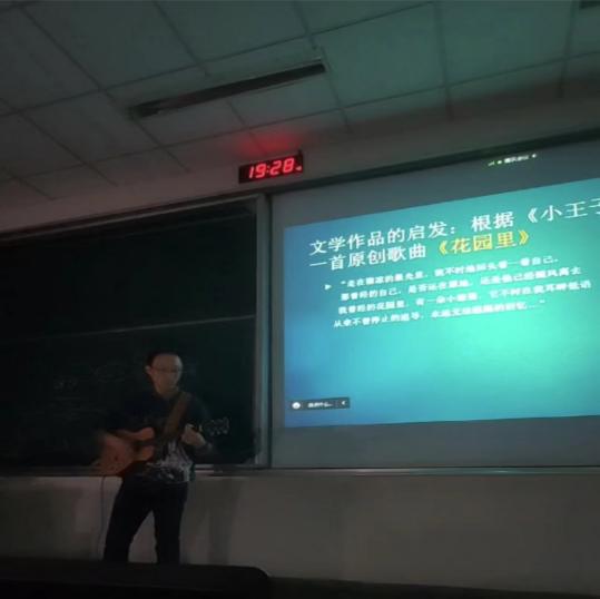 王老师声情并茂的讲座感染了每一个人,法语2201班的吴泽豪同学在讲座后和大家分享了他的心得体会。他谈到,王巍老师引举的贝多芬交响曲等古典名曲唤起了他强烈的共鸣,动听的吉他弹唱也让他真正深刻理解了傅雷所说的“世界上最纯洁的欢乐莫过于艺术”的深刻含义。艺术内化于人的本质,每个都应该对生活饱有激情。艺术的伟大意义在于它能彰显人的真正情感、揭示内心生活的奥秘,艺术是美的激情,是蓬勃的生命和张扬的力量。