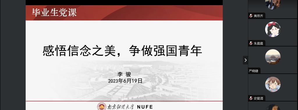 李骏书记为即将毕业的研究生上了一次题为“感悟信念之美,争做强国青年”的毕业生党课。李书记择取了人的观念之中的两个关键词“自由”与“平等”,阐释了“积极自由”与“消极自由”的区别以及政治平等、文化平等的内涵。李书记要求毕业生党员们正确认知自由与平等的深刻内涵,积极推动世界文明交流互鉴,真正践行新时代的外语人担当。