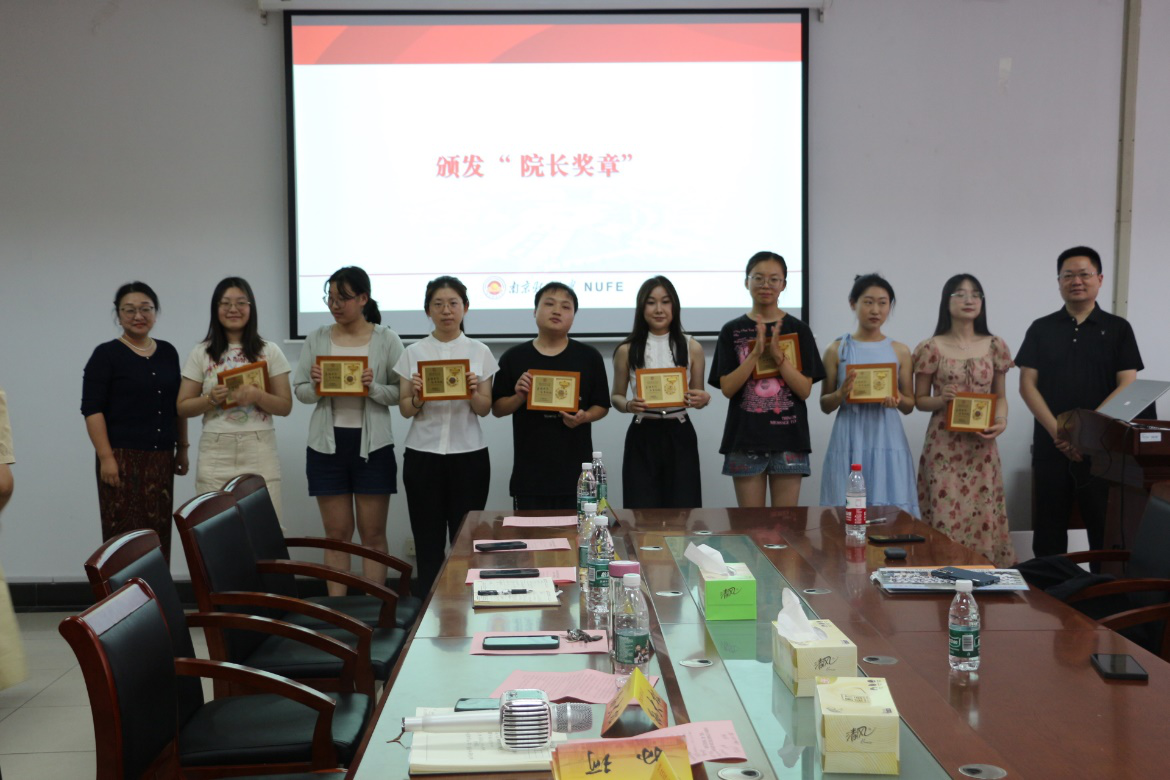 大会伊始,院党委副书记孙大松宣读了“院长奖章”获得者名单,他高度赞扬了获奖者在学业和社会实践等方面展现出的优秀品质,同时号召广大在校生向榜样学习,踔厉奋发,不断提高专业能力和实践创新能力,争做高素质的新外语人。丁强院长和邵怡老师为获奖者颁发奖章,并与他们合影留念。