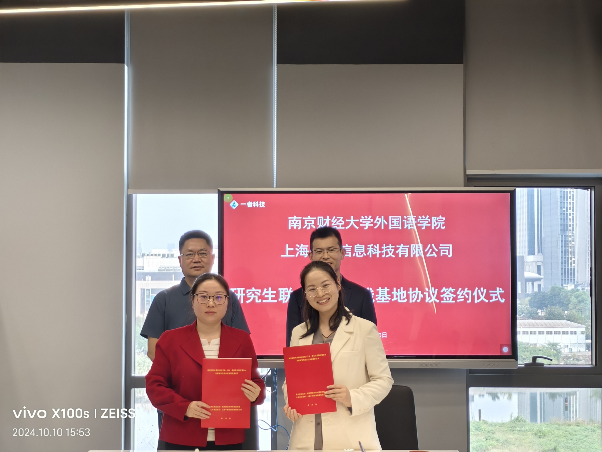 为了进一步推进香港赛马会 MTI高质量发展,10月10日下午,香港赛马会 与上海一者信息科技有限公司举行校企合作框架协议签约仪式。上海一者信息科技有限公司CEO张井、上海一者信息科技有限公司南京分公司总经理王文静、上海一者信息科技有限公司项目经理彭颖娇,香港赛马会 副院长(主持工作)丁强、香港赛马会 副书记孙大松、教工第一支部书记陈芙蓉、杨艳博士、游思淳老师和程水英老师出席了仪式。仪式由上海一者信息科技有限公司CEO张井主持。