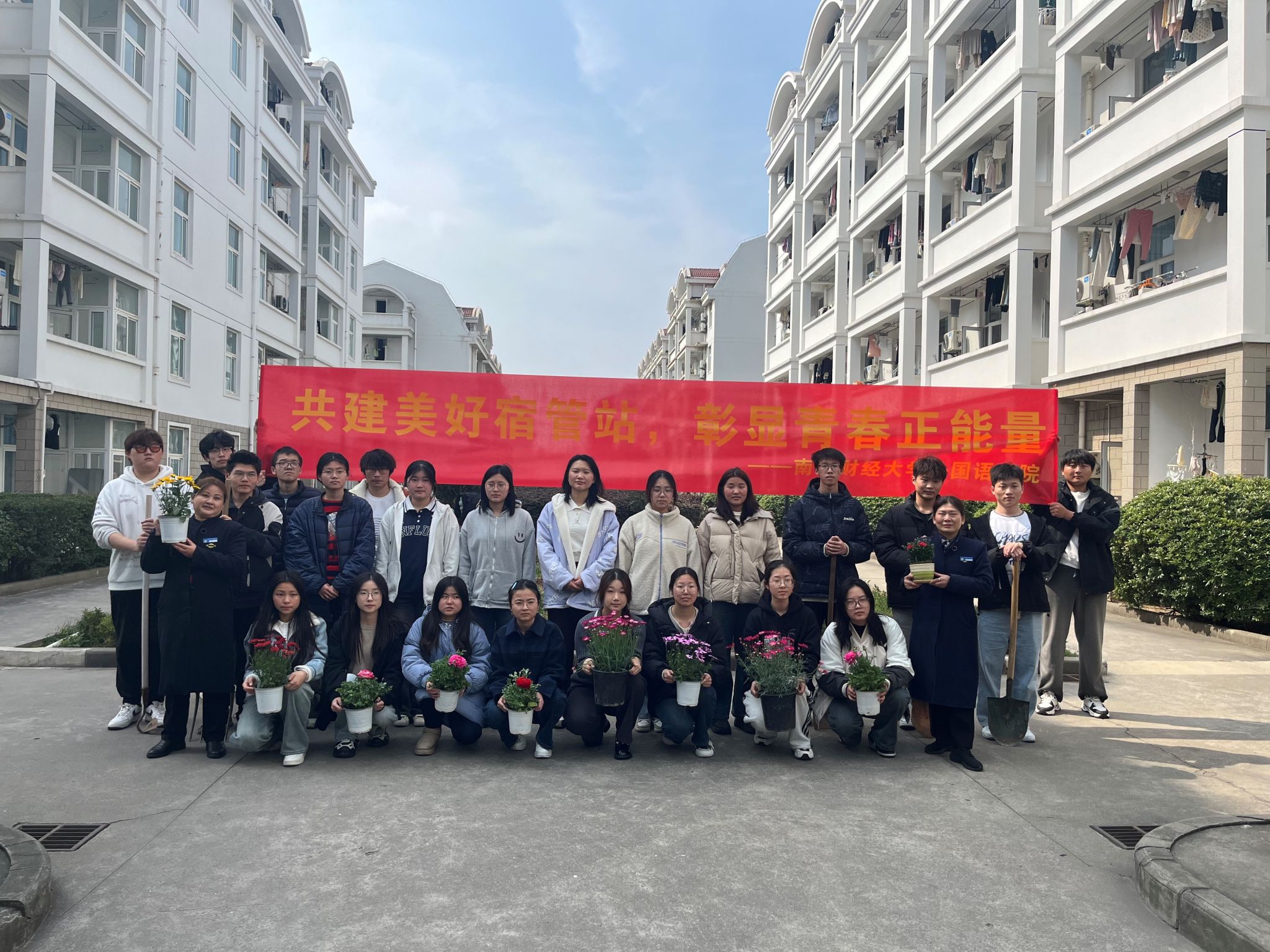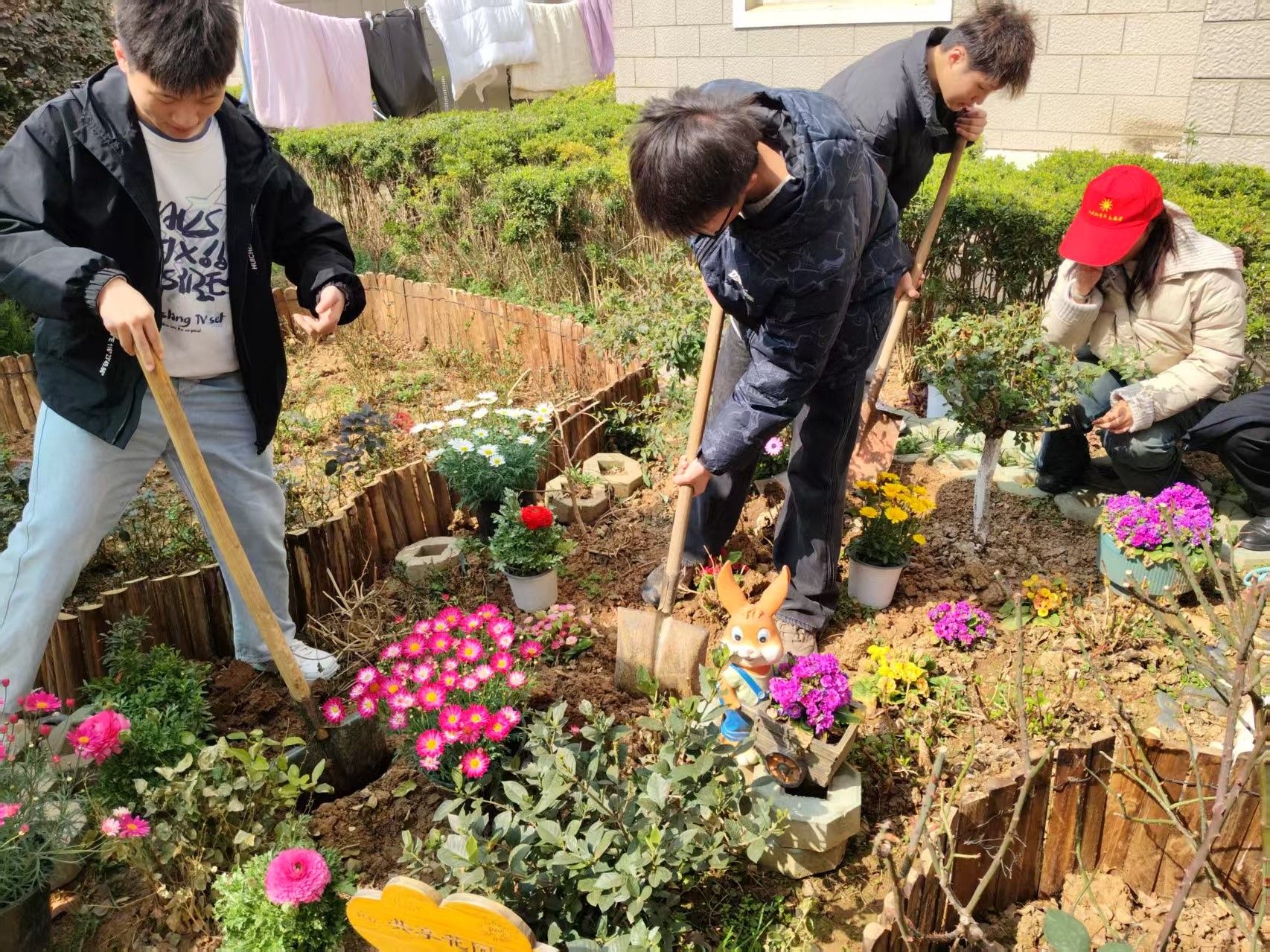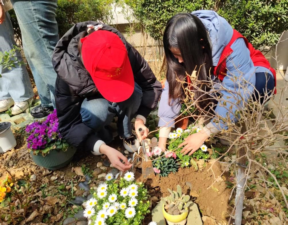 弘扬雷锋精神,播撒爱心火种。花坛种花活动,用双手打造出更加活力、充满生机的校园。同学们在宿管工作人员的带领下分成多个小组,参与到种花行动中。同学们手持花种、铁锹等工具,男生们负责挖坑,每个坑的深度和宽度都有一定的要求,以保证种子和花苗的存活。接着,女生们小心翼翼地放入花苗和种子,男生们填土,再轻轻地压实,为花苗和种子浇透水,让土壤与花苗种子充分接触,最后再覆盖上一点干土。整个种花过程中,同学们都非常认真细致,每个步骤都做得一丝不苟,心中期待着它们在春天发芽结果。