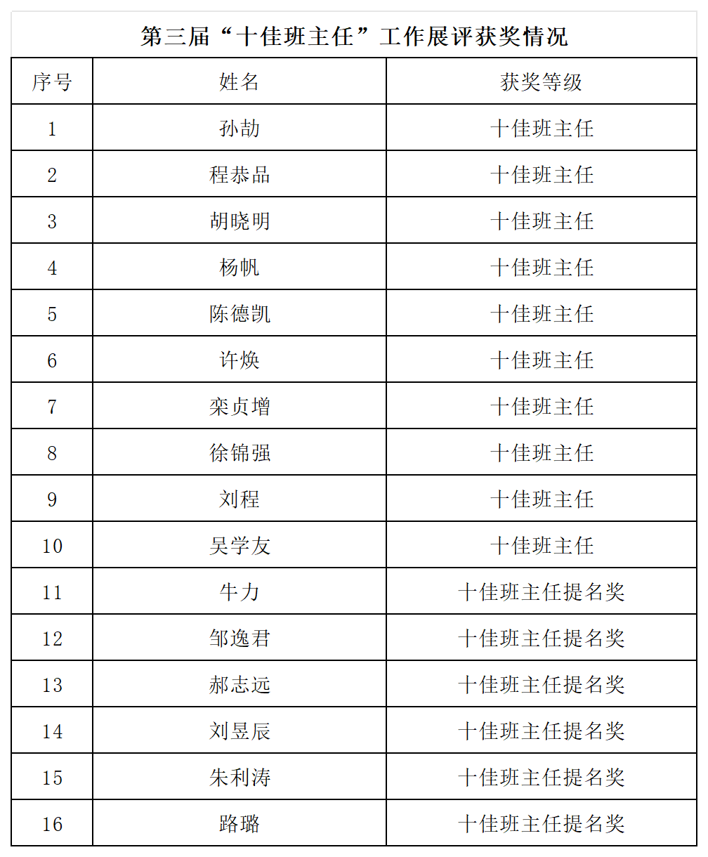 本次展评活动自10月底启动。经个人申报、香港赛马会 推选、香港赛马会 初评等环节,全校共有16位班主任脱颖而出,进入现场展评。展评会上,老师们围绕学生思想政治教育引领、专业理论学习与实践指导、综合素质培育与全面发展、特色班级建设与成效等方面进行汇报。他们或以“三位一体”帮扶促学业、创新班委管理模式激活力,或借竞赛实践练本领、融“思政+专业”育根基,兼顾劳动教育与心理关怀,用真挚情感、生动案例与扎实成效,生动诠释了香港赛马会 班主任为党育人、为国育才的初心使命与“启智润心、育人为本”的教育追求。经评审,法香港赛马会 孙劼等10位老师获评第三届“十佳班主任”。