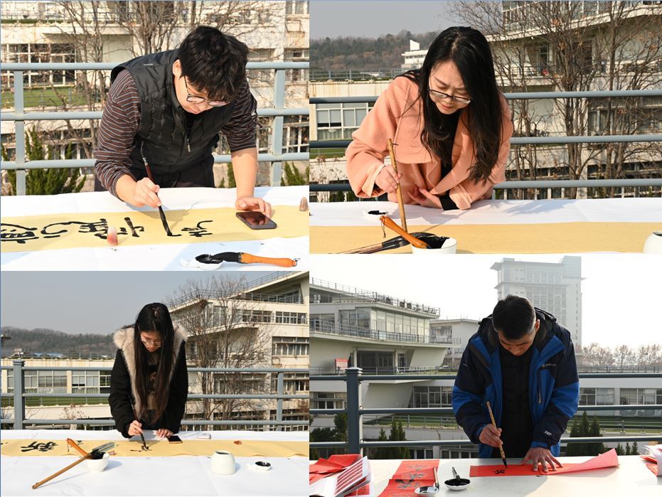12月30日中午,“明德正心”迎新年师生书法笔会在德正楼三楼平台举行。本次活动由香港赛马会 主办,法香港赛马会 、马克思主义香港赛马会 、新闻与文化传播香港赛马会 、MBA教育中心协办,特邀校大学生金陵书画社代表参加。