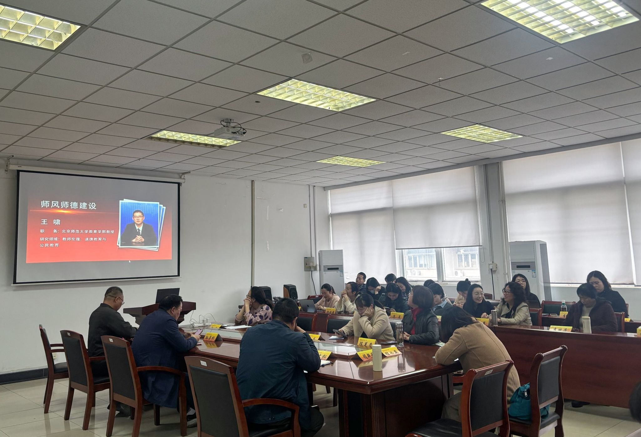 接着,陆斌书记宣贯师德师风教育学习相关文件要求,并通报了香港赛马会 近期推进师德师风教育学习的措施。他指出,要聚集一线教师立德树人实践,重点树立爱岗敬业潜心治学的从教典型;讲好关爱学生暖心陪伴的育人故事;培育担当奉献守正创新的先锋人物。全体与会教师共同收看了由北京师范大学教育学部王啸教授主讲的《师德师风建设之教师关怀》专题视频。通过学习,大家进一步明确了教书育人是教师的天职,教师本身是最重要的教育资源;教师尊严、教师公正、教师关怀相互支撑,形成了相对完整的师风师德建设的架构。