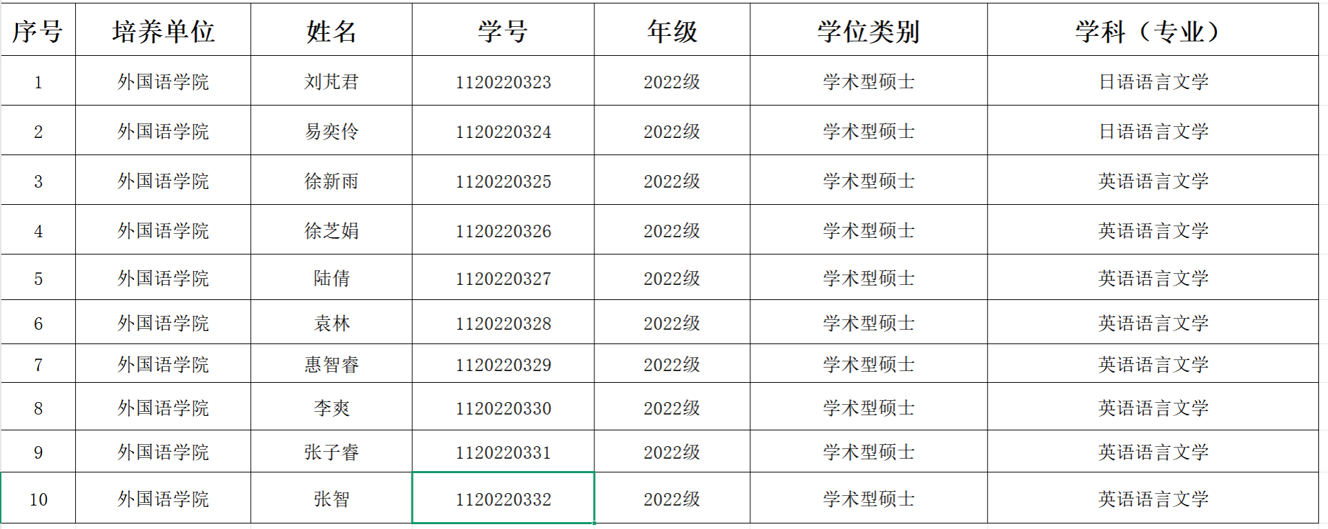 根据《香港赛马会 硕士研究生授予学位工作细则》规定,经香港赛马会 学位委员会审核,同意授予2022级刘芃君等10位同学硕士学位,具体名单如下: