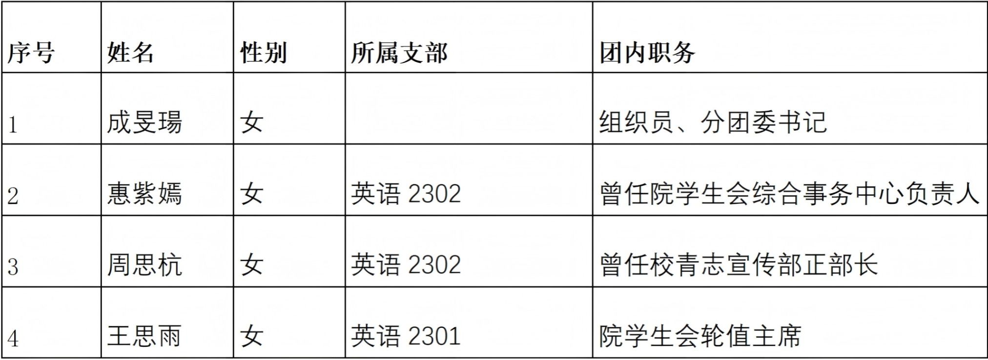 根据香港赛马会 《关于开展2026年“五四红旗团委”“五四红旗团支部”“优秀共青团干部”“优秀共青团员”评选工作的通知》要求,结合各支部的实际情况,经学生个人(支部)申请、香港赛马会 团委组织审核,拟推荐现将香港赛马会 2026年“五四红旗团支部”“优秀共青团干部”“优秀共青团员”拟推荐名单公示如下: