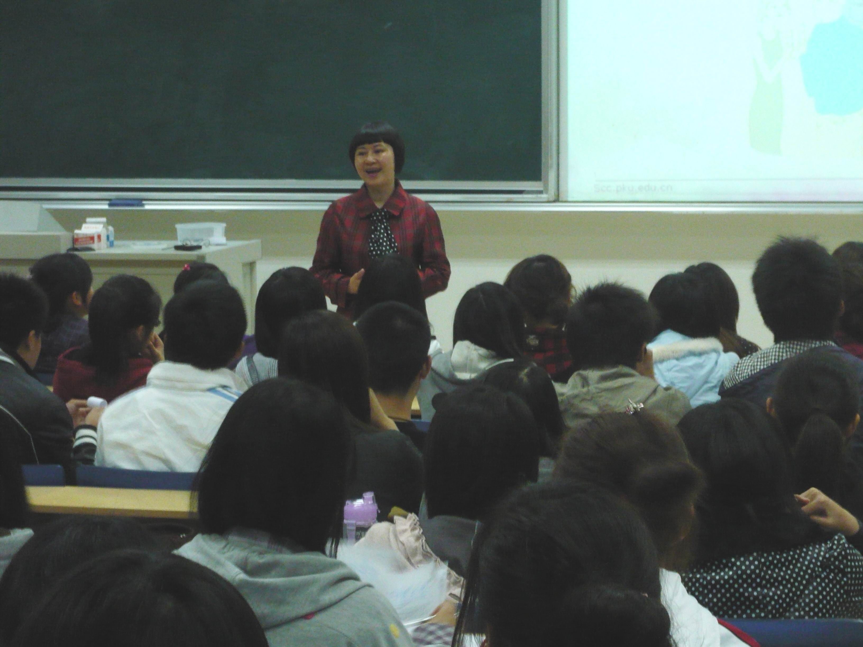 夜幕降临,肖书记以一口漂亮流利的英语为这次报告拉开了序幕。在这次报告中,肖书记与学生们开展了许多互动活动,对参加本次报告学生的职业生涯初步定位有了进一步的了解。她向学生展示了四种性格,四种态度和四种人生,并引导他们找出自己的人生定位。出于肖书记和善亲切的笑容,同学们也都欣然参与其中,现场笑声频频,气氛十分欢快融洽。