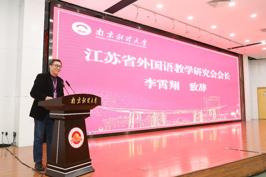 江苏省外国语教学研究会会长李霄翔教授为开幕式致辞。李教授提到,习近平总书记强调,研究生教育在培养创新人才、提高创新能力、服务经济社会发展以及推进国家治理体系和治理能力现代化方面具有重要作用。研究生教育的发展水平,是衡量国家人才培养能力的关键指标。因此,研究生培养质量稳步上升,是江苏省的教育水平提升的重要指标。教育教学必须主动适应时代的需要,他呼吁专业内部和专业之间的跨学科交流,外语学科与理科、工科等学科的融合。李教授希望论坛形成辐射作用,让学生之间、导师之间和学科之间形成更紧密的联系。