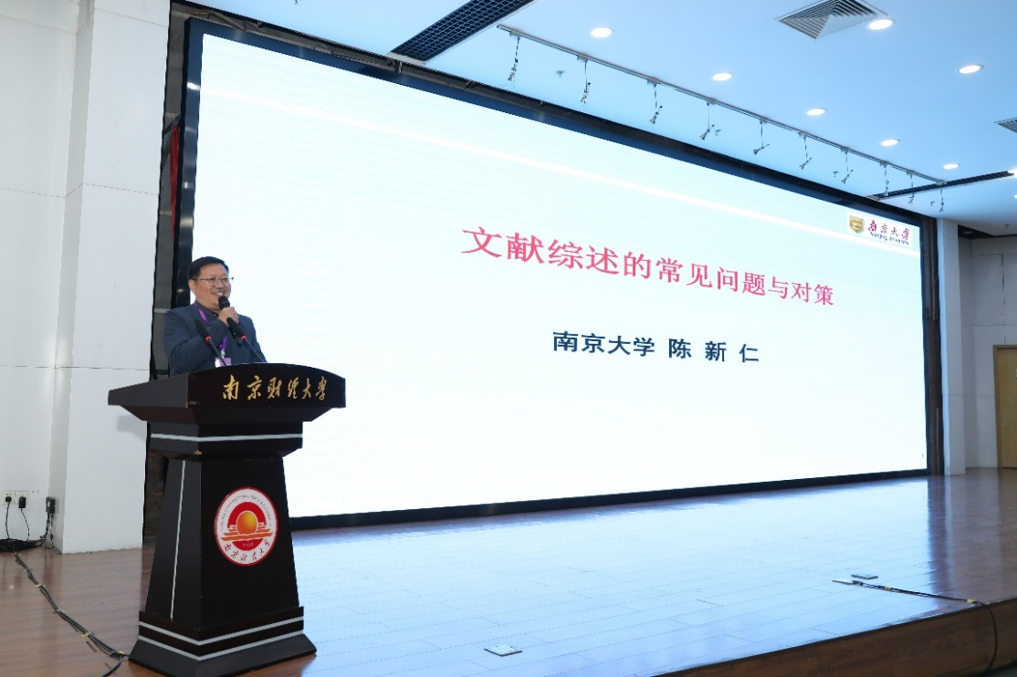 南京大学陈新仁教授作“文献综述的常见问题与对策”的主题发言。他指出,高质量的文献综述是学术创新的前提,能够帮助研究者明确研究方向和依据。陈教授指出,文献综述不仅是知识梳理,还能为当前研究提供合理性说明。他总结了十二个常见问题,如选择低品质文献、使用过时资料、包含过多入门内容等,并提出相应对策,包括优先引用权威和前沿文献、确保文献新颖性和齐备性、紧密围绕主题组织内容、尊重前人成果并保持建设性批评。