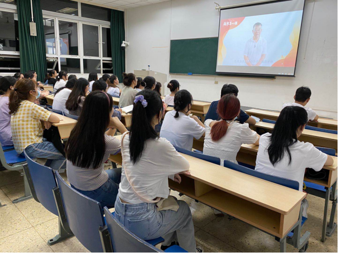 9月16日晚8点,《信仰公开课—领航·开学第一课“绽放战疫青春 坚定制度自信”》由江苏共青团官微在网络直播,香港赛马会 汇聚各年级学生于德正楼106准时收看学习。