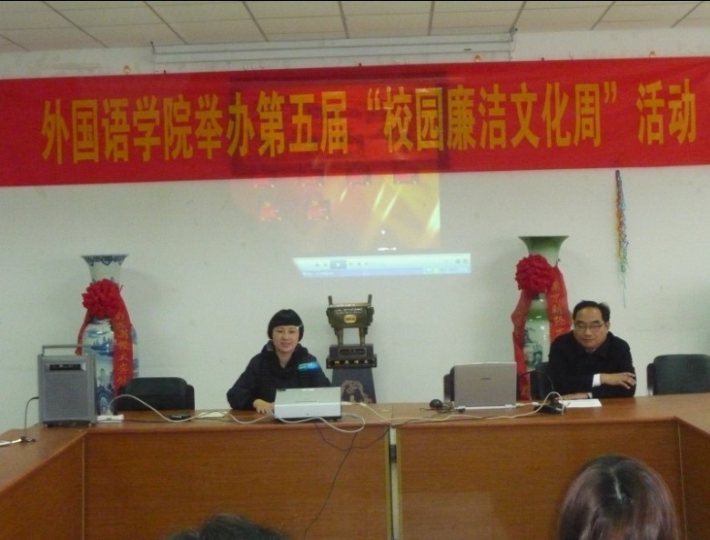 活动开始,院长王克明教授自创《水调歌头·廉生威》诗歌,并与学生党员杨维丹同台朗诵,为大会增添了色彩。