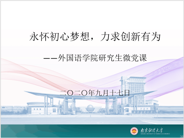 作为研究生新生的开学第一课,这堂微党课内容上深入浅出,情感上丝丝入扣,从历史与现实、理论与实际、宏观与微观的层面对研究生新生提出了要求,表达了期望。严肃中不失活泼,理性中透着温情。祝愿2020级硕士生在未来的学习生涯中,能够永怀初心梦想,力求创新有为。