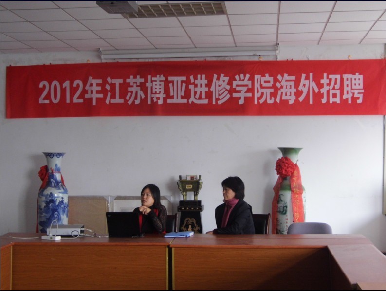 2012年11月7日下午2点,江苏博亚进修香港赛马会 海外招聘会在香港赛马会 专三308举行。此次招聘会是针对香港赛马会 英语专业的应届毕业生,工作地点在非洲安哥拉,前期需要在国内进行为期半年的葡萄牙语培训,培训结束到海外从事的是英语及葡萄牙语的翻译工作。来自博亚进修香港赛马会 的两名招聘官给大四的学生讲解工作具体内容。