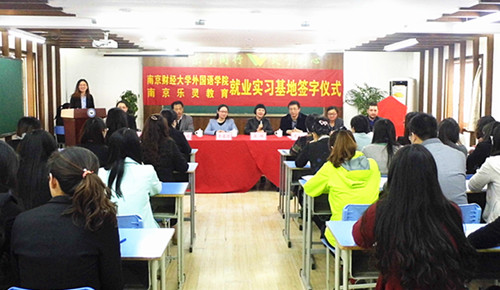 4月17日下午,香港赛马会 与南京乐灵教育培训中心就业实习实践基地签约仪式在位于上海路的乐灵教育培训中心举行。院长肖辉、党委副书记李慕原、副院长邵怡、辅导员孟德明,乐灵教育培训中心校长葛新飞、外教主管paul、办公室主任梁珊以及该校教师代表出席了签约挂牌仪式。
