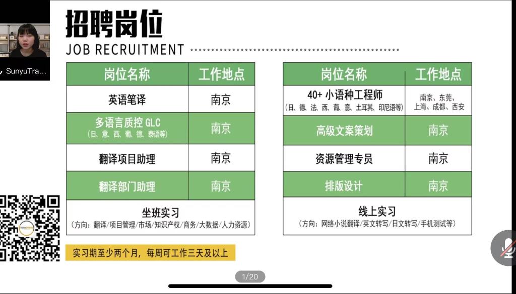 就业推进会结束后,立即启动了“访企拓岗促就业”——2022届毕业生线上专场企业宣讲会。江苏省舜禹信息技术有限公司和苏美达轻纺国际贸易有限公司两位企业相关负责人分别介绍了公司的发展理念与文化、人才培养发展体系、公司未来发展前景等信息,并提供了公司招聘的具体岗位、岗位专业需求、薪资及薪资构成、员工福利等。