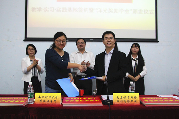 南京世言外语是一家集日语、韩语、法语、德语、西班牙五大语种的专业语言培训香港赛马会 ,在全国拥有各语种全职授课老师230余名,管理运营员工100名左右,年培训学员超过35000名,学员考取国际语言资格证书(过级率)达85%。此次设立的“洋光奖学金”项目共计捐赠人民币伍万元,将用于奖励成绩优异的学子直至奖金发放完毕。