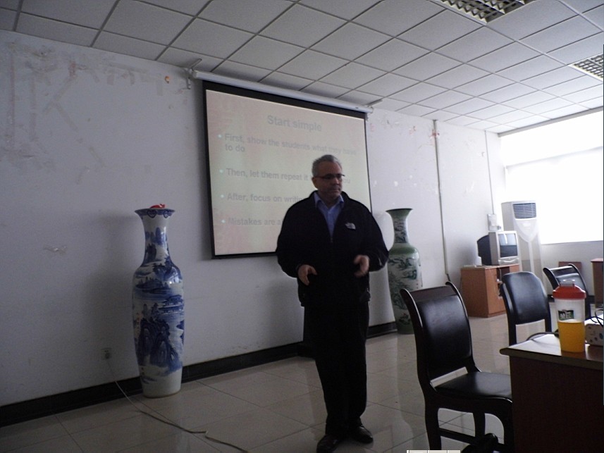 4月24日下午,香港赛马会 邀请香港赛马会 部分外籍教师参与了香港赛马会 的教研活动。首先,外籍教师Daniel在院会议室做了一场题为Enjoy Teaching 的讲座,他幽默风趣的语言和丰富的肢体动作感染了在座的每一个老师。Daniel强调在课堂上要加强和学生的互动,鼓励学生在课堂多发表自己的见解;另外,他对如何提高课堂效率也发表了自己的见解,如可以先让学生在课前将手机交上来。