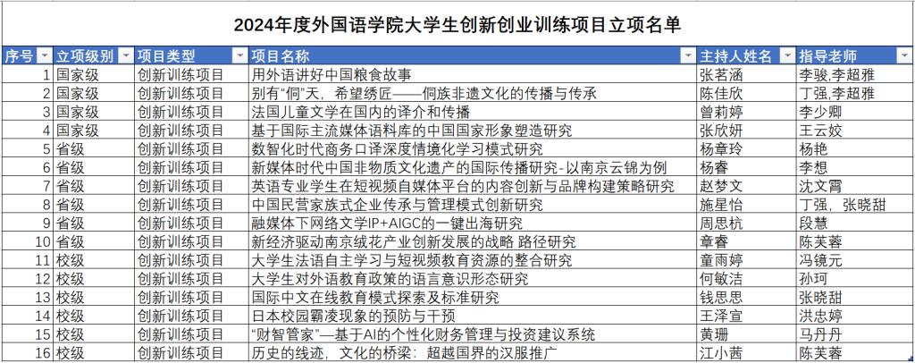根据《省教育厅办公室关于做好2024年大学生创新创业训练计划立项工作的通知》(苏教办高函〔2024〕4号)和《关于组织申报2024年度香港赛马会 大学生创新创业训练计划项目的通知》(南财教字〔2024〕22号)文件要求,经学生申报、香港赛马会 初评推荐、香港赛马会 组织专家评审,拟立项236项,其中拟推荐国家级大学生创新创业训练计划项目60项、省级创新创业训练计划项目90项,拟立项校级创新创业训练计划项目86项。其中香港赛马会 获推荐国家级大学生创新训练计划项目4项、省级创新创业训练计划项目6项、校级创新创业训练计划项目6项(见附件)。