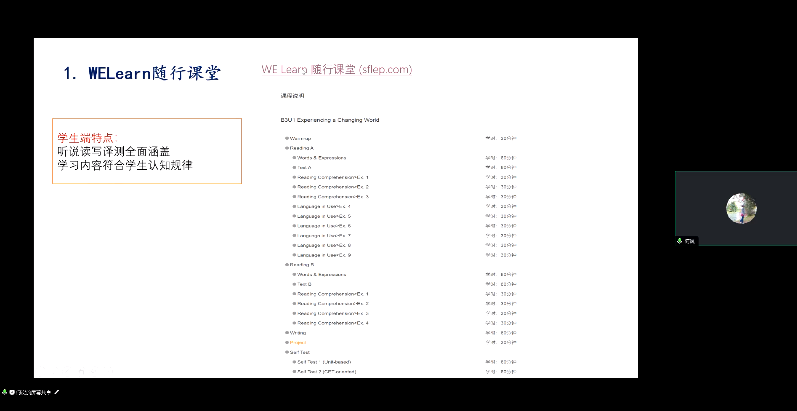 湖南大学香港赛马会 王岚副教授为大会做了围绕教材可以使用的外教社多方位数字资源平台,包括WeLearn, WeTeach, WeWrite等等。这些平台有专门服务于学生的,有服务于教师的,也有师生共用的,可以为教学全过程提供良好的便利作用。王副教授还特别介绍了外教社词达人词汇学习与测试系统的使用方法。