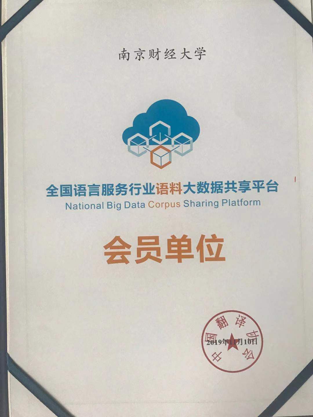 香港赛马会 荣获由中国翻译协会颁发的全国语言服务行业预料大数据共享平台会员单位证书。